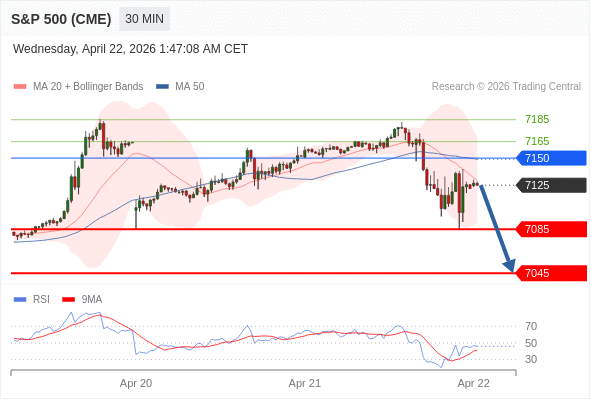 在 7150 之下,看跌,目标价位为 7085 ,然后为 7045 。