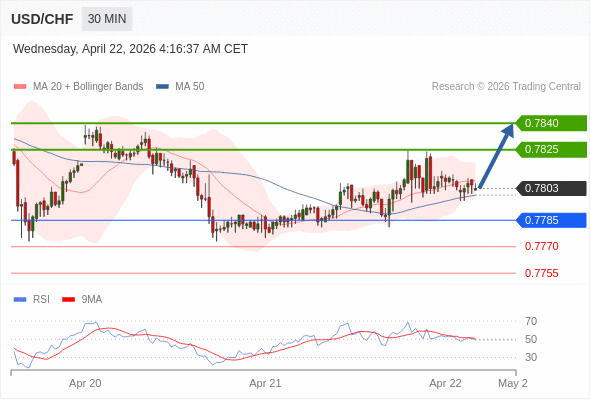 在 0.7785 之上,看涨,目标价位为 0.7825 ,然后为 0.7840 。