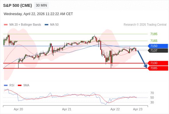 在 7150 之下,看跌,目标价位为 7100 ,然后为 7085 。