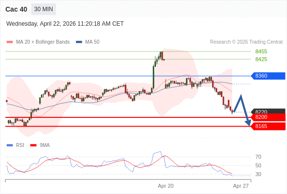 在 8360 之下,看跌,目标价位为 8200 ,然后为 8165 。