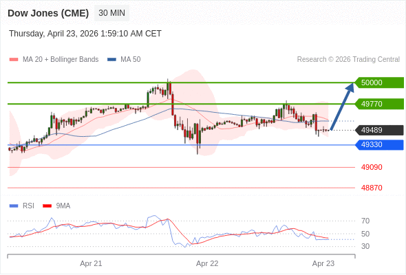 在 49330 之上,看涨,目标价位为 49770 ,然后为 50000 。
