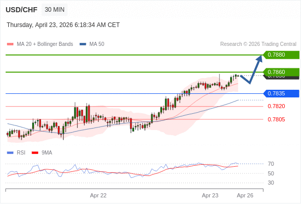在 0.7835 之上,看涨,目标价位为 0.7860 ,然后为 0.7880 。