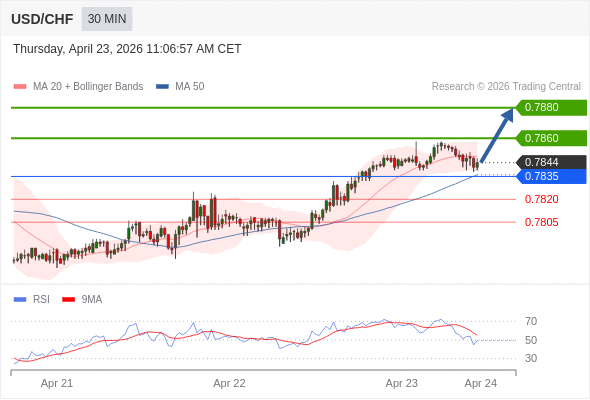 在 0.7835 之上,看涨,目标价位为 0.7860 ,然后为 0.7880 。