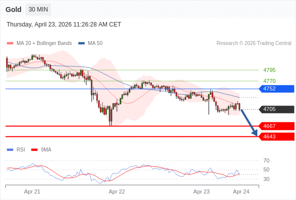在 4752 之下,看跌,目标价位为 4667 ,然后为 4643 。