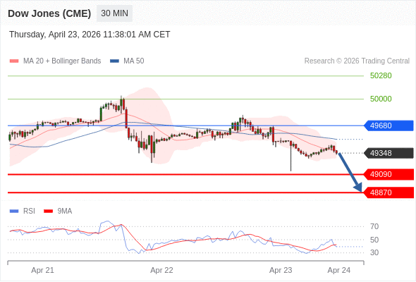 在 49680 之下,看跌,目标价位为 49090 ,然后为 48870 。