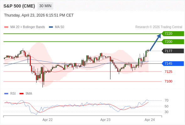 在 7145 之上,看涨,目标价位为 7200 ,然后为 7220 。