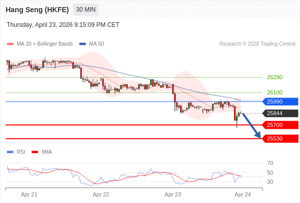 在 25990 之下,看跌,目标价位为 25700 ,然后为 25530 。