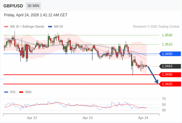 在 1.3490 之下,看跌,目标价位为 1.3445 ,然后为 1.3425 。
