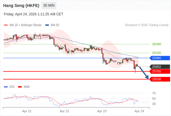 在 25990 之下,看跌,目标价位为 25700 ,然后为 25530 。