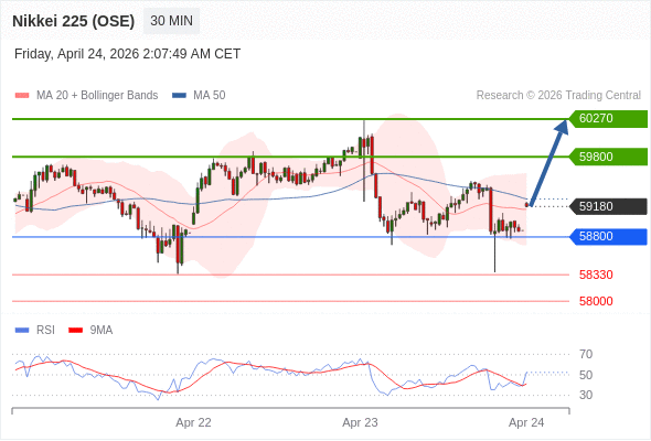 在 58800 之上,看涨,目标价位为 59800 ,然后为 60270 。