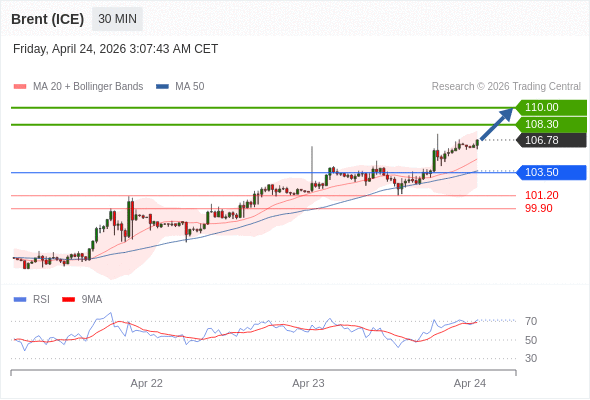 在 103.50 之上,看涨,目标价位为 108.30 ,然后为 110.00 。