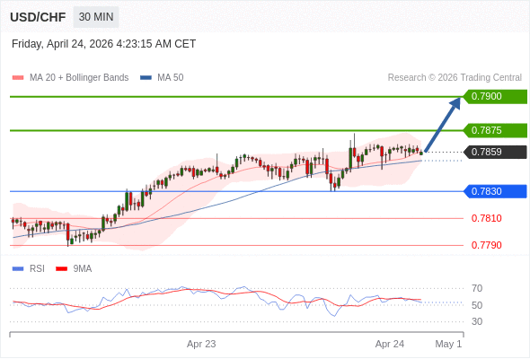 在 0.7830 之上,看涨,目标价位为 0.7875 ,然后为 0.7900 。