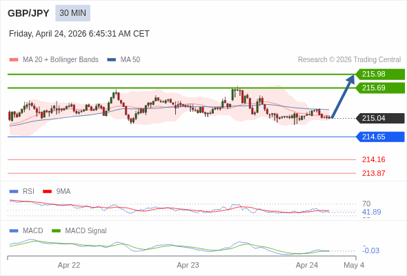 替代方案: 在214.65以下,期待214.16和213.87。