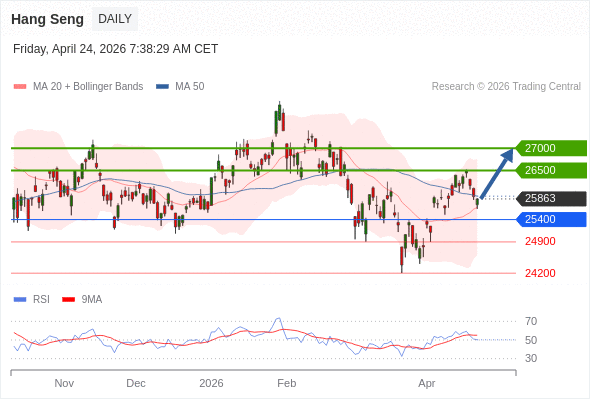 恒生指数 短线: 在25400之上,看涨。