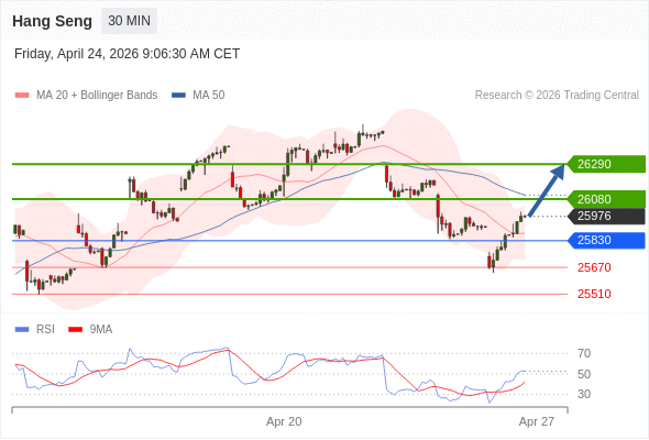 在 25830 之上,看涨,目标价位为 26080 ,然后为 26290 。