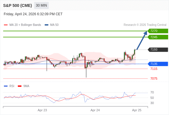 在 7135 之上,看涨,目标价位为 7245 ,然后为 7270 。