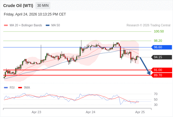 在 96.60 之下,看跌,目标价位为 92.40 ,然后为 91.00 。