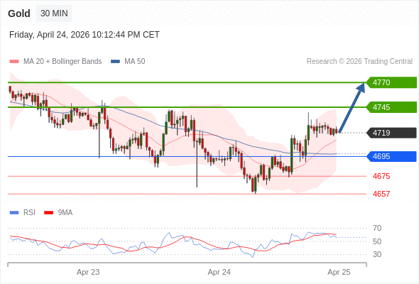 在 4695 之上,看涨,目标价位为 4745 ,然后为 4770 。
