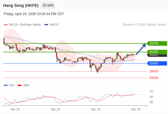 在 25850 之上,看涨,目标价位为 26100 ,然后为 26290 。