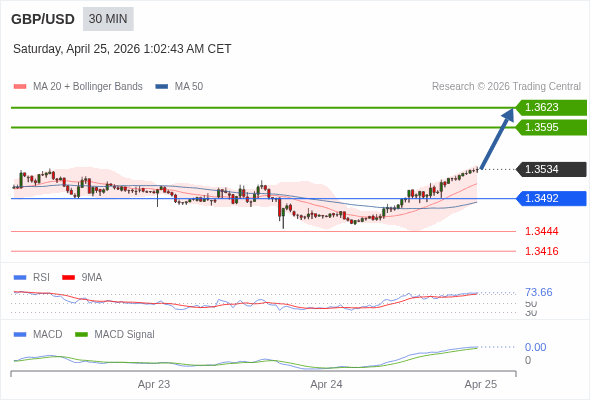 替代方案: 在1.3492以下,期待1.3444和1.3416。