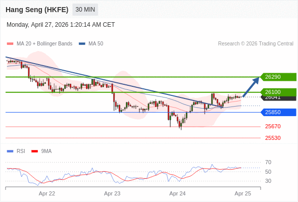 在 25850 之上,看涨,目标价位为 26100 ,然后为 26290 。