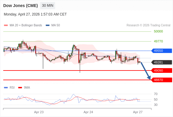 交易策略: 在 49550 之下,看跌,目标价位为 49090 ,然后为 48870 。