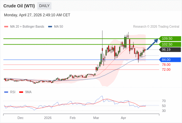 在 84.00 之上,看涨,目标价位为 102.50 ,然后为 109.50 。