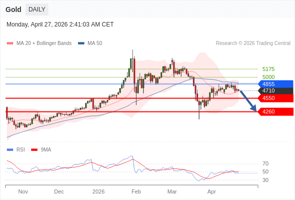 在 4855 之下,看跌,目标价位为 4550 ,然后为 4260 。