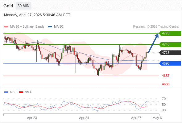 在 4690 之上,看涨,目标价位为 4740 ,然后为 4770 。