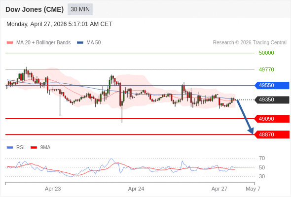 在 49550 之下,看跌,目标价位为 49090 ,然后为 48870 。