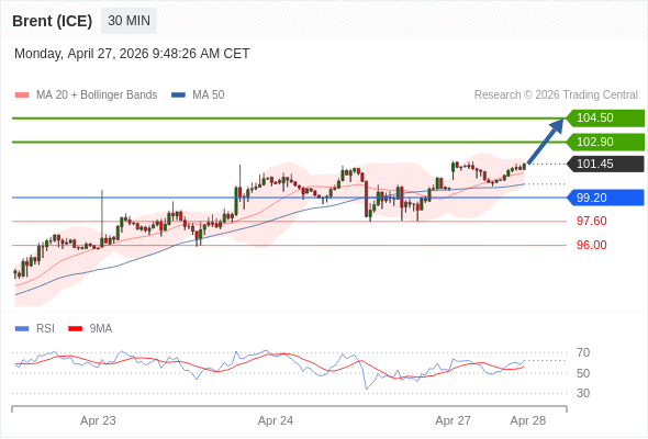 在 99.20 之上,看涨,目标价位为 102.90 ,然后为 104.50 。