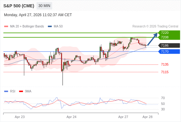 在 7170 之上,看涨,目标价位为 7208 ,然后为 7220 。