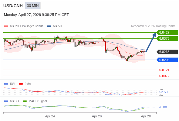 替代方案: 在6.8203以下,期待6.8121和6.8072。