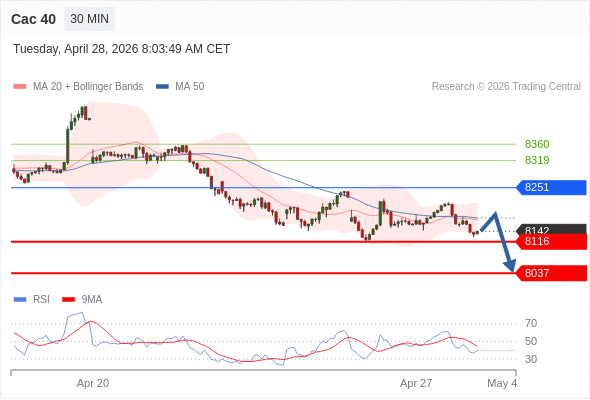 在 8251 之下,看跌,目标价位为 8116 ,然后为 8037 。