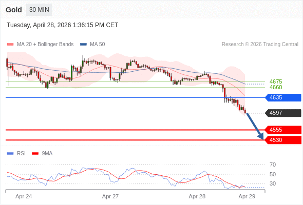 在 4635 之下,看跌,目标价位为 4555 ,然后为 4530 。