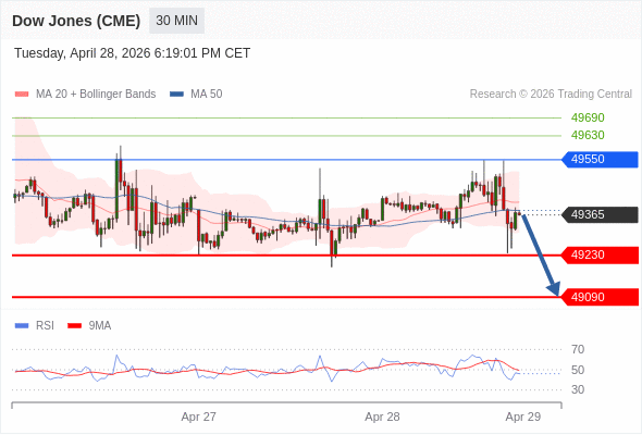 在 49550 之下,看跌,目标价位为 49230 ,然后为 49090 。