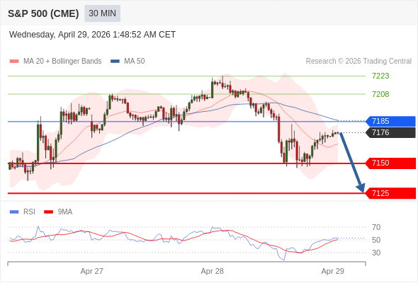 在 7185 之下,看跌,目标价位为 7150 ,然后为 7125 。