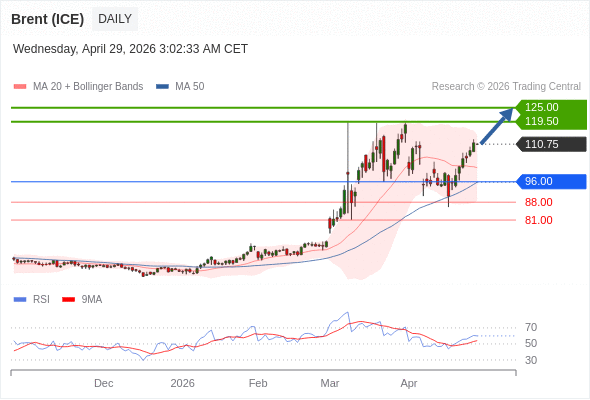 在 96.00 之上,看涨,目标价位为 119.50 ,然后为 125.00 。