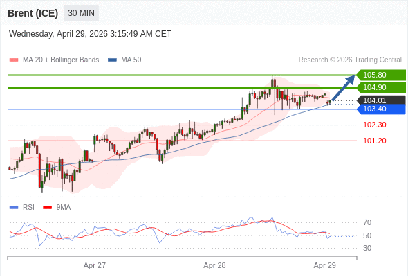 在 103.40 之上,看涨,目标价位为 104.90 ,然后为 105.80 。