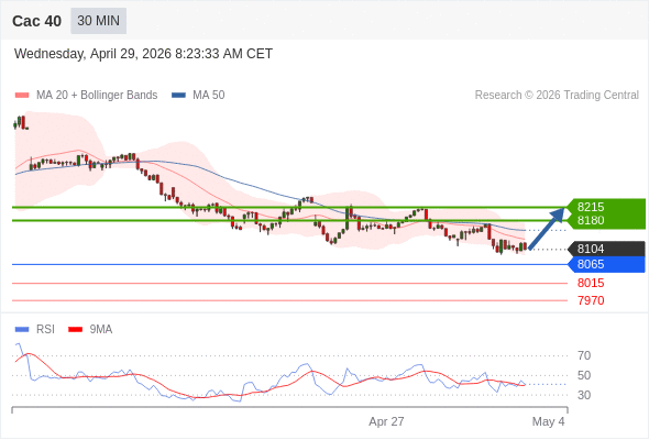 Cac 40 当日内: 超短线(当日内)支撑位在8065附近。