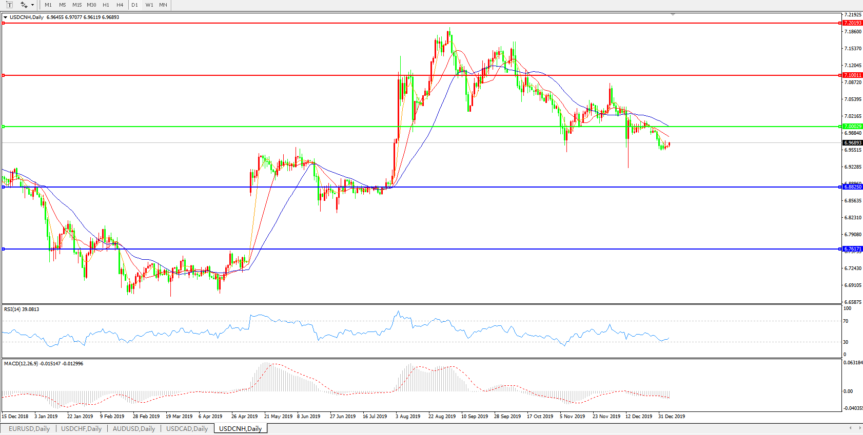 交易策略: 在7.0000之下,看跌,目标价位为6.8820,然后为6.7600。