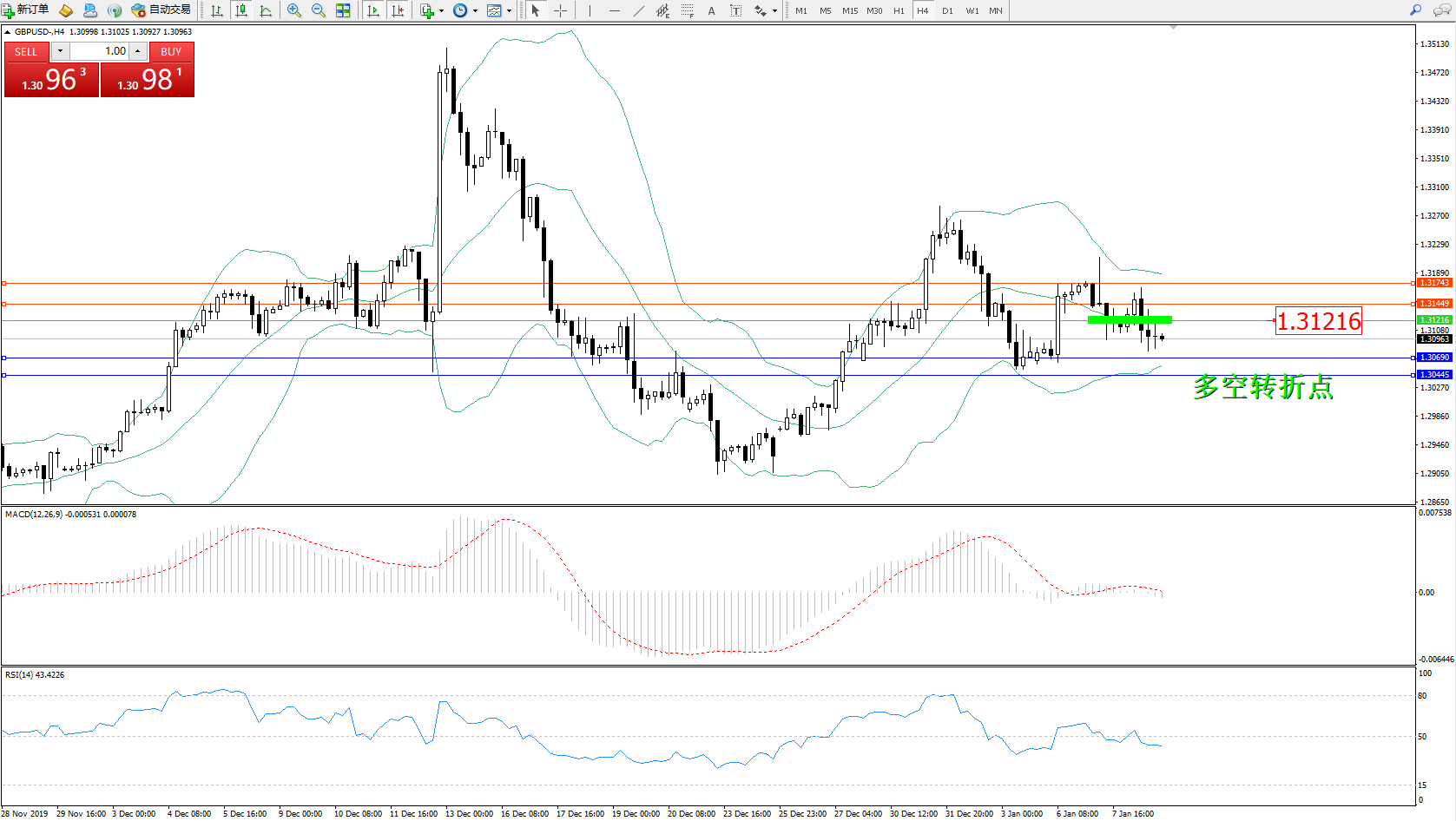交易策略:1.31216下方看跌,目标1.30690、1.30445