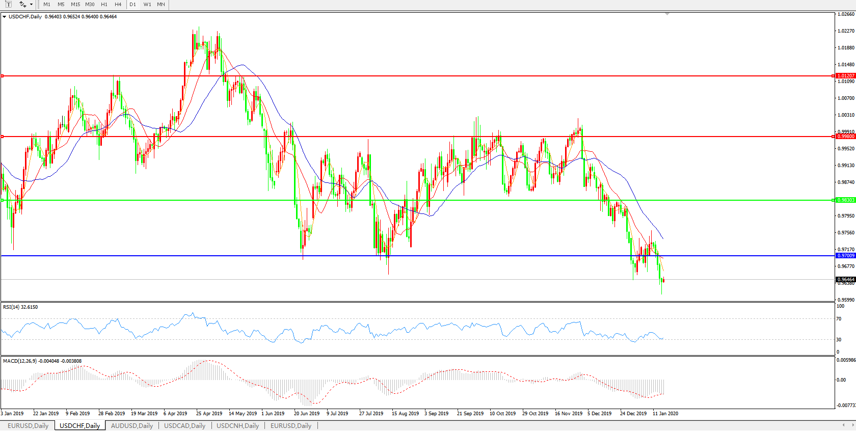 美元兑瑞郎USDCHF 日线图: