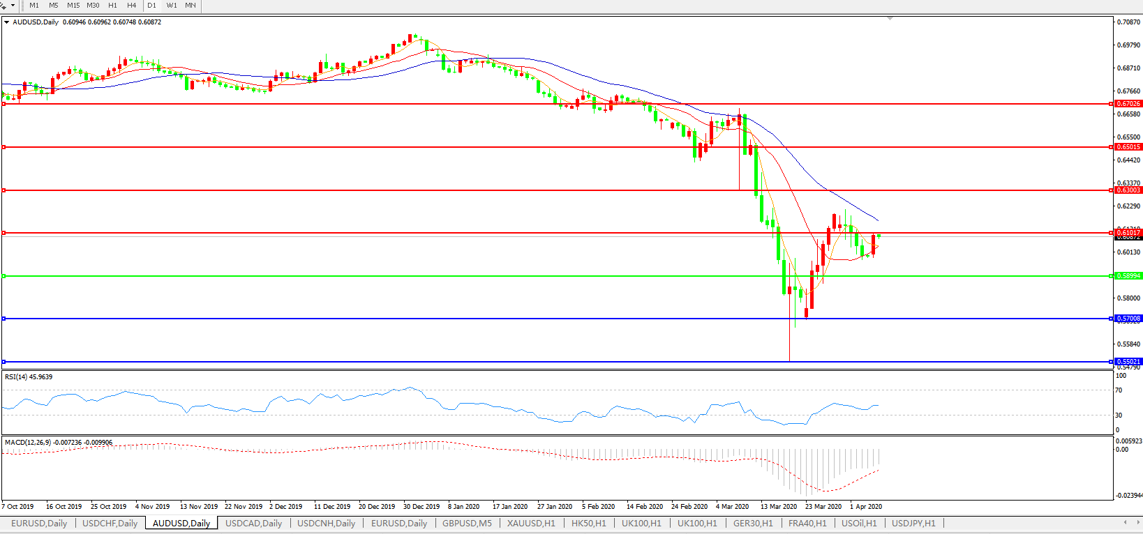 澳洲联储不大可能在周二的会议上宣布进一步调整政策。自澳洲联储3月19日紧急降息以来经济前景恶化,疫情继续在澳洲和全球蔓延,但市场已经温和反弹,因应全球政府和央行刺激措施的潜在影响;预计澳洲联储将就国内和全球经济前景恶化发表评论,并指出疫情的经济影响仍然高度不确定。第一和第二季度的严重经济萎缩可能蔓延至第三季度。准备在必要时采取进一步措施,并且不会加息,直至接近经济增长、通胀和就业目标; 他们还可能强调,经济最终将复苏,澳洲金融体系具有韧性,能够应对疫情带来的挑战,而且澳洲经济有望反弹。政策声明不大可能令市场意外,应当也不会引发澳元大幅波动。