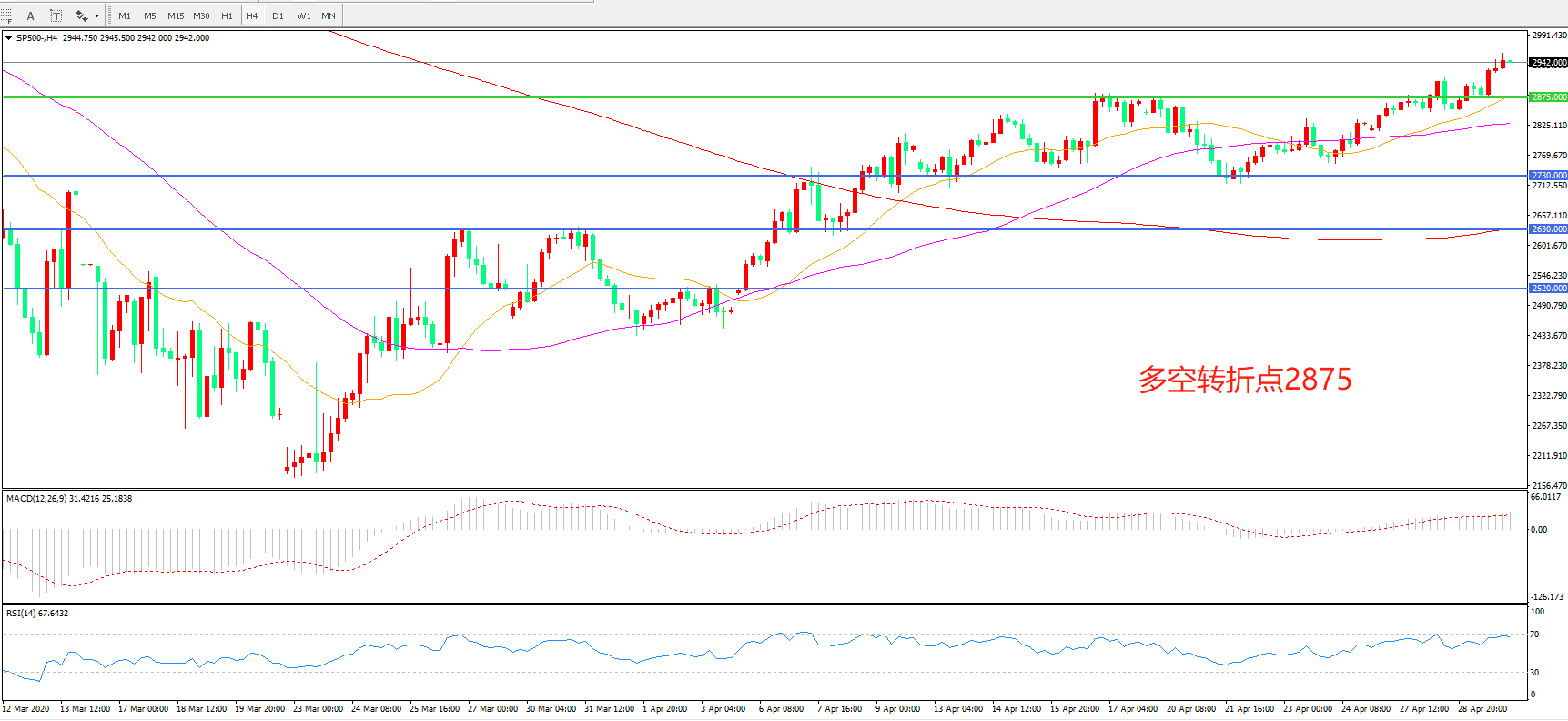 多空转折点:2875.00