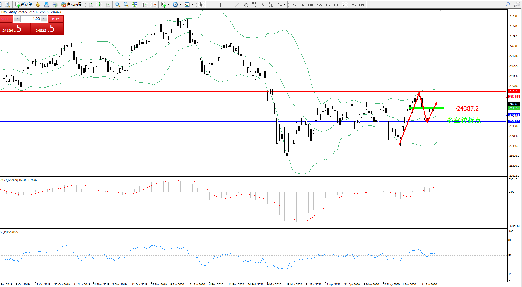 香港恒生指数6月19日(周五)收盘上涨178.95点,涨幅0.73%,报24643.89点;港股三大指数收涨,恒指国指盘中一度升超1%。本周累涨约1.4%。阿里概念股、系统软件板块涨幅居前。阿里影业涨9%,阿里健康涨超7%,协同通信涨超6%。港股三大指数收涨,恒指国指盘中一度升超1%。香港限聚令上限放宽至50人今日生效,促香港本地股集体走强,东亚银行涨超8%,港大零售涨超7%;生物科技、钢铁股回落明显,重庆钢铁跌近5%;汇付天下尾盘急升,大幅收涨52.17%。这将有助香港必需品消费零售及餐饮业务,加上政府将向永久性居民派发1万港币的补助,有助于带动整体零售市场的气氛及销售表现。