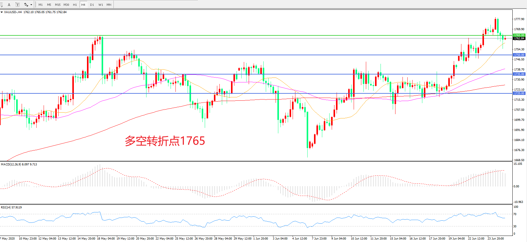 多空转折点:1765.00