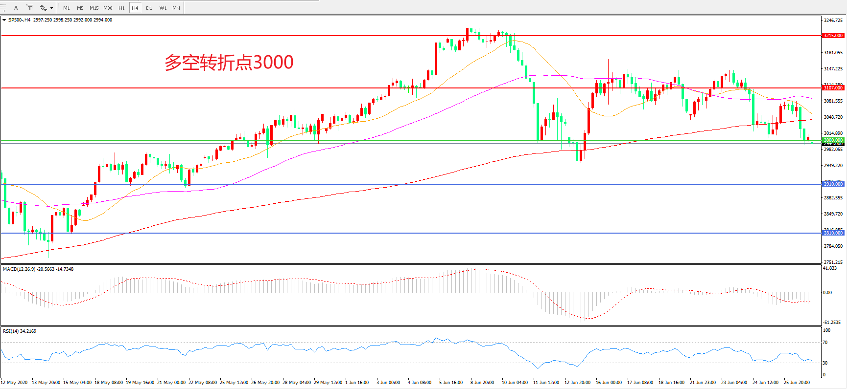 交易策略:在3000.00之下看跌,目标2910.00 2810.00