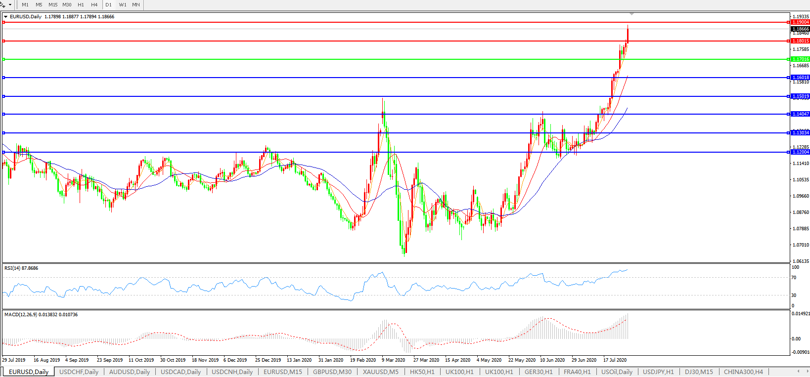 欧元兑美元EURUSD 日线图: