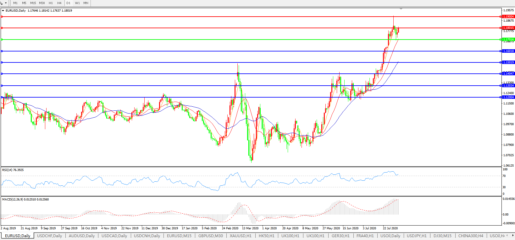 欧元兑美元EURUSD 日线图: